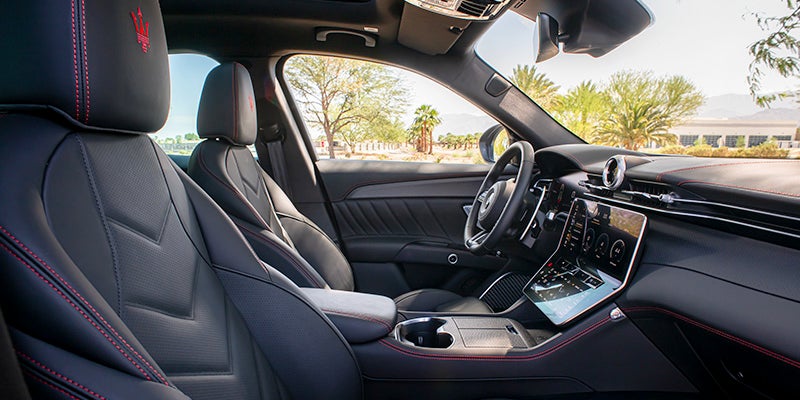 Maserati pulls out all the stops for the Grecale's interior. The GT trim features leather interior accents. The Modena has wood trim for a more natural feel. The Trofeo has perforated leather and a sporty style with exposed carbon fiber cabin accents.