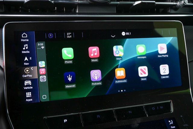 - Radio: Sonus Faber 860 Watts Premium Audio System -inc: 14 speakers w/subwoofer, Maserati Intelligent Assistant (MIA), 12.3" upper touchscreen, 8.8" lower touchscreen, navigation, HD Radio, SiriusXM radio w/1-year trial subscription, wired and wireless Apple CarPlay and Android Auto, Maserati connected services w/trial subscriptions, Alexa in-vehicle voice assistant and eCall and bCall w/trial subscriptions