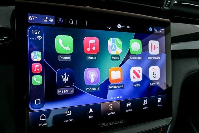 The Quattroporte Modena's striking Nero Ribelle Metallic exterior, complemented by the Comfort & Convenience Package and Sportivo Package, exudes a bold and sophisticated presence. Step inside and be enveloped in the luxurious Alcantara headliner and full premium perforated leather seating, where you'll enjoy the convenience of heated and ventilated front seats, a heated steering wheel, and a host of other premium amenities.