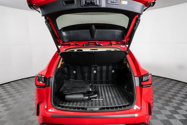 2024 Lexus NX 350 Luxury AWD in Red Line exterior paint over tan interior. 8-Speed Automatic 2.4L I4 DOHC 16V Bluetooth®, NON-SMOKER, NX 350 Luxury, 4D Sport Utility, 2.4L I4 DOHC 16V, 8-Speed Automatic, AWD, Red Line, Palomino w/NuLuxe Seat Trim, 10 Speakers, 18 Wheels, 4-Wheel Disc Brakes, ABS brakes, Air Conditioning, Alloy wheels, AM/FM radio: SiriusXM, Anti-whiplash front head restraints, Auto High-beam Headlights, Auto tilt-away steering wheel, Auto-dimming door mirrors, Auto-dimming Rear-View mirror, Automatic temperature control, Axle Ratio: 3.33, Brake assist, Bumpers: body-color, Delay-off headlights, Driver door bin, Driver vanity mirror, Dual front impact airbags, Dual front side impact airbags, Electronic Stability Control, Emergency communication system: Safety Connect (up to 10-year trial subscription included), Exterior Parking Camera Rear, Four wheel independent suspension, Front anti-roll bar, Front Bucket Seats, Front Center Armrest, Front dual zone A/C, Front fog lights, Front reading lights, Fully automatic headlights, Garage door transmitter: HomeLink, Genuine wood door panel insert, Heads-Up Display, Heated & Ventilated Front Bucket Seats, Heated door mirrors, Heated front seats, Illuminated entry, Knee airbag, Leather Seat Trim, Leather Shift Knob, Leather steering wheel, Low tire pressure warning, Memory seat, Navigation system: Drive Connect Cloud Navigation (3-year trial subscription included), Occupant sensing airbag, Outside temperature display, Overhead airbag, Overhead console, Panic alarm, Passenger door bin, Passenger vanity mirror, Power door mirrors, Power driver seat, Power Liftgate, Power moonroof, Power passenger seat, Power steering, Power windows, Radio data system, Rain sensing wipers, Rear anti-roll bar, Rear reading lights, Rear seat center armrest, Rear window defroster, Rear window wiper, Remote keyless entry, Security system, Speed control, Speed-sensing steering, Speed-Sensitive Wipers, Split folding rear seat, Spoiler, Steering wheel memory, Steering wheel mounted audio controls, Tachometer, Telescoping steering wheel, Tilt steering wheel, Traction control, Trip computer, Turn signal indicator mirrors, Variably intermittent wipers, Ventilated front seats, Wireless Apple CarPlay/Wireless Android Auto.